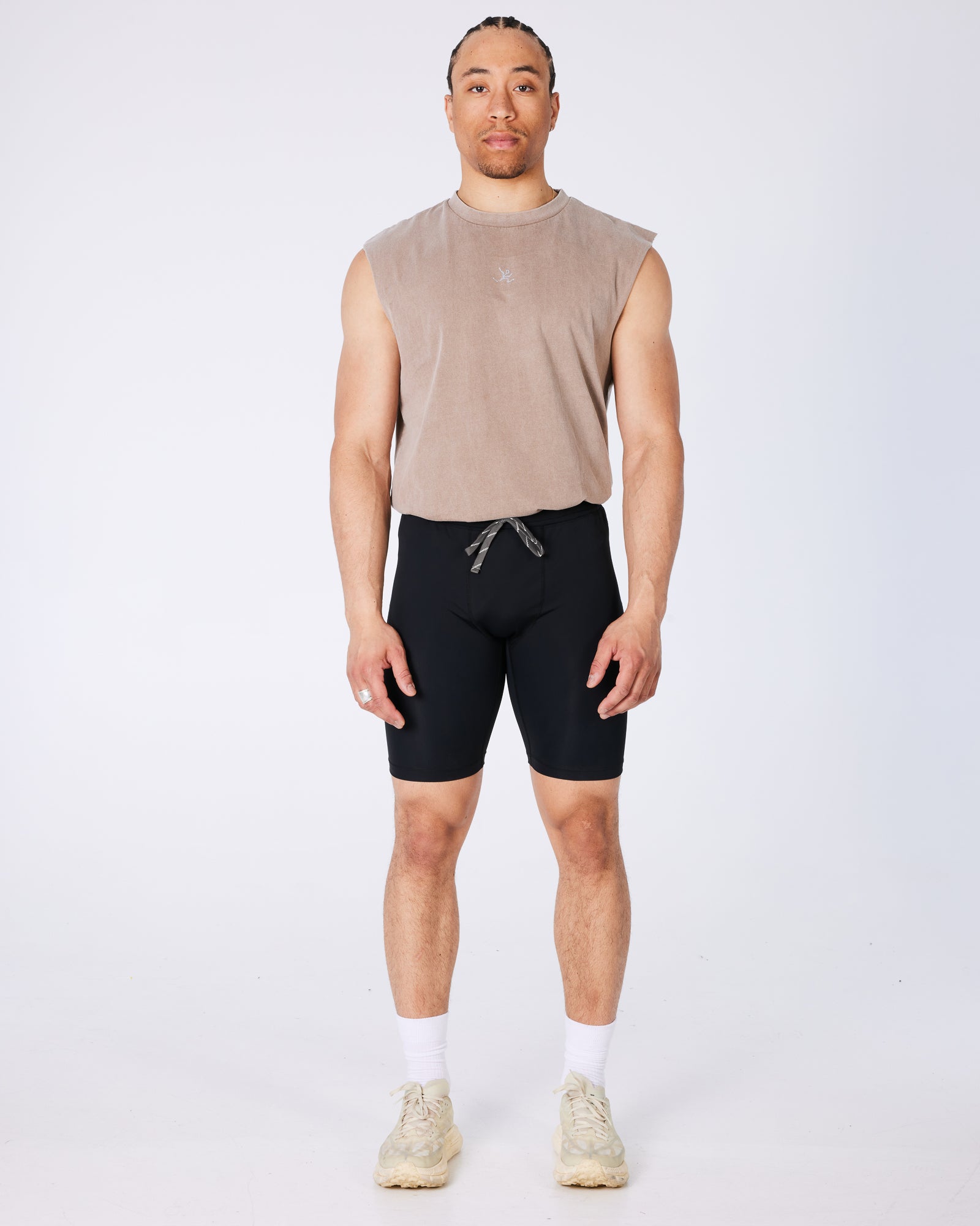 Our brand new TIEMPOS 9'' half tights are the perfect everyday or race day piece. Made of 100% light weight polyester, including 2 pockets on each side of the shorts, an inside pocket for your keys and a zipped one in the back. Draw strings on the front for better fit and comfort and a reflective TIEMPOS logo.